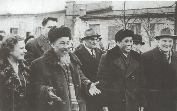 Chủ tịch Hồ Chí Minh đến thăm Đại sứ quán Việt Nam tại Liên Xô (chụp tại phòng khách của Đại sứ quán) (Nguồn: hochiminh.vn)