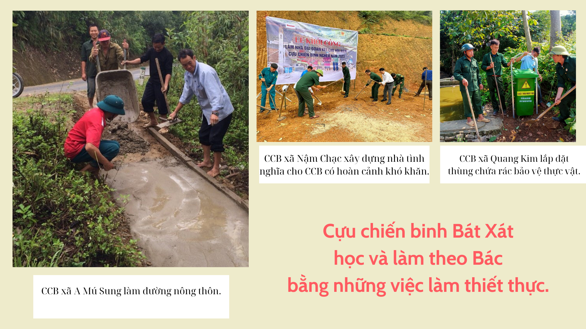 Trong năm 2023, các cấp hội đã vận động 32 gia đình hội viên cựu chiến binh xây nhà vệ sinh mới; hiến 1.020 m2 đất; ủng hộ 8,5 triệu đồng và 248 ngày công xây dựng các công trình, nâng cấp, mở rộng đường giao thông nông thôn; phối hợp với các ban, ngành, MTTQ, đoàn thể các cấp tổ chức 128 buổi tuyên truyền xây dựng nông thôn mới, thu hút hơn 3.500 lượt cán bộ, hội viên, người dân tham gia…