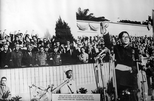 | Đồng chí Tổng Bí thư Lê Duẩn đọc Điếu văn tại Lễ tang Chủ tịch Hồ Chí Minh (9/9/1969) (Ảnh tư liệu) |