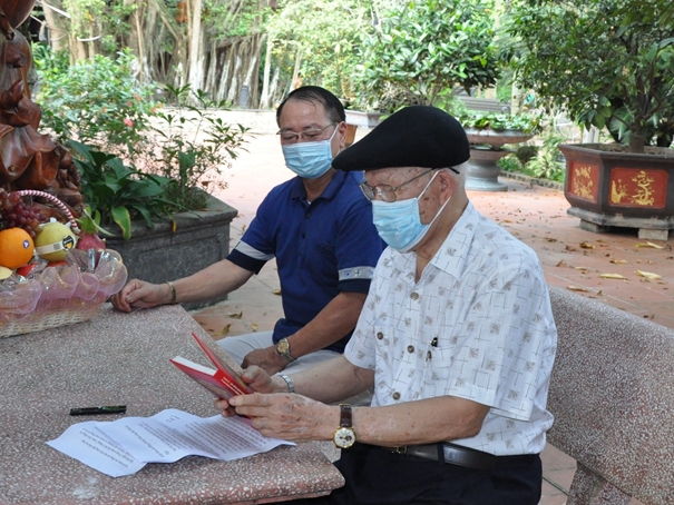 Ông Vũ Văn Nha ở xã Trung Hòa (Yên Mỹ) nhớ lại hồi ức khi làm giao liên cho Việt Minh những năm trước Cách mạng Tháng Tám năm 1945