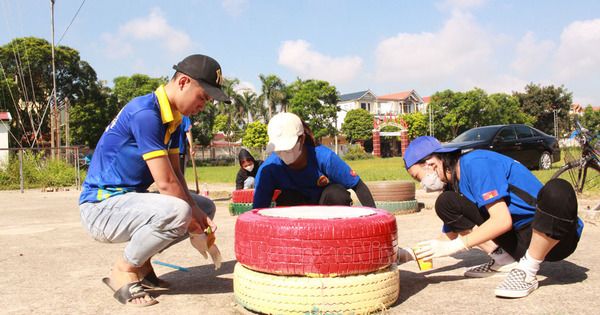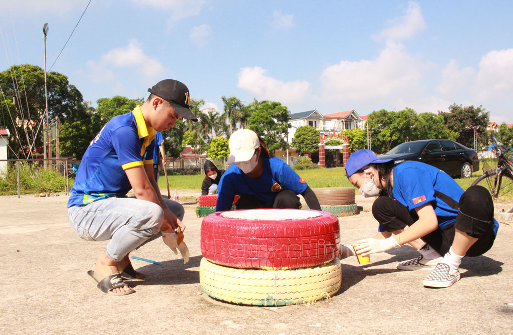Đoàn viên, thanh niên xã Tân Lãng (huyện Lương Tài) tu sửa khu vui chơi, sân thể thao cho thiếu nhi tại địa phương.
