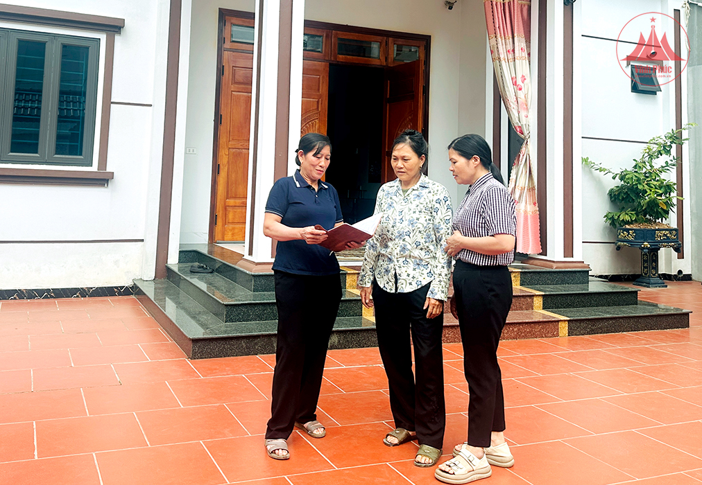 Chị Cao Thị Kim Lương (ngoài cùng bên phải) tuyên truyền, vận động hội viên thực hiện tốt các mô hình học và làm theo Bác.