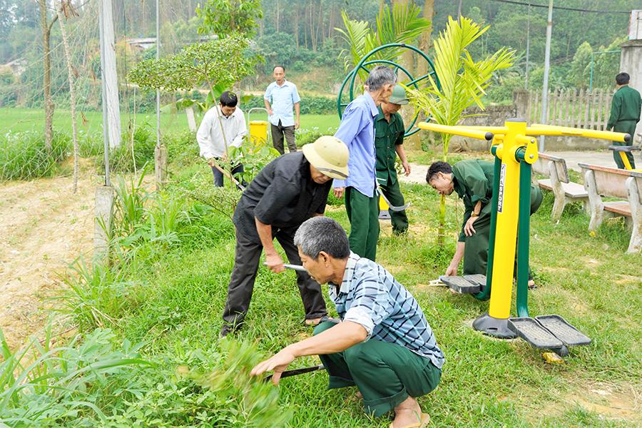 Các thành viên Câu lạc bộ Cựu chiến binh tự quản bảo vệ môi trường (Hội CCB xã Nhân Đạo) luôn gương mẫu, hăng hái tham gia các hoạt động vì cộng đồng.