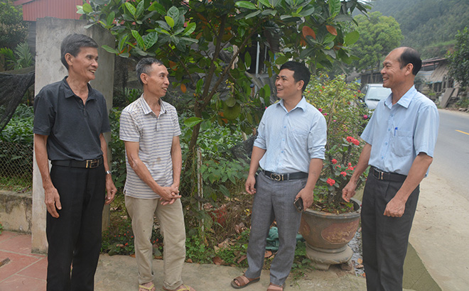 Lãnh đạo Đảng ủy xã Đào Thịnh kiểm tra việc thực hiện các tiêu chí xây dựng NTM kiểu mẫu tại thôn Khe Măng.