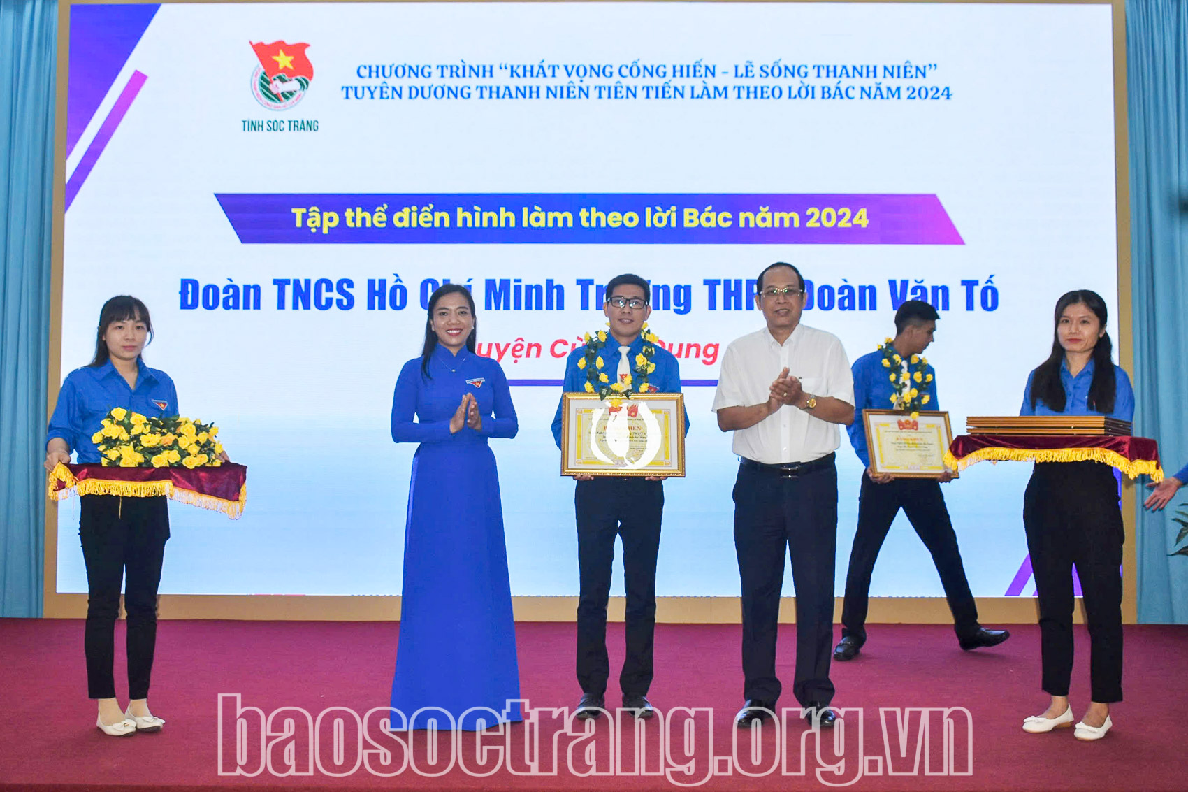 Với nhiều hoạt động thiết thực trong học tập và làm theo Bác, Đoàn Trường THPT Đoàn Văn Tố vinh dự được Tỉnh đoàn Sóc Trăng tuyên dương tập thể điển hình làm theo lời Bác năm 2024. Ảnh: TẤN PHÁT
