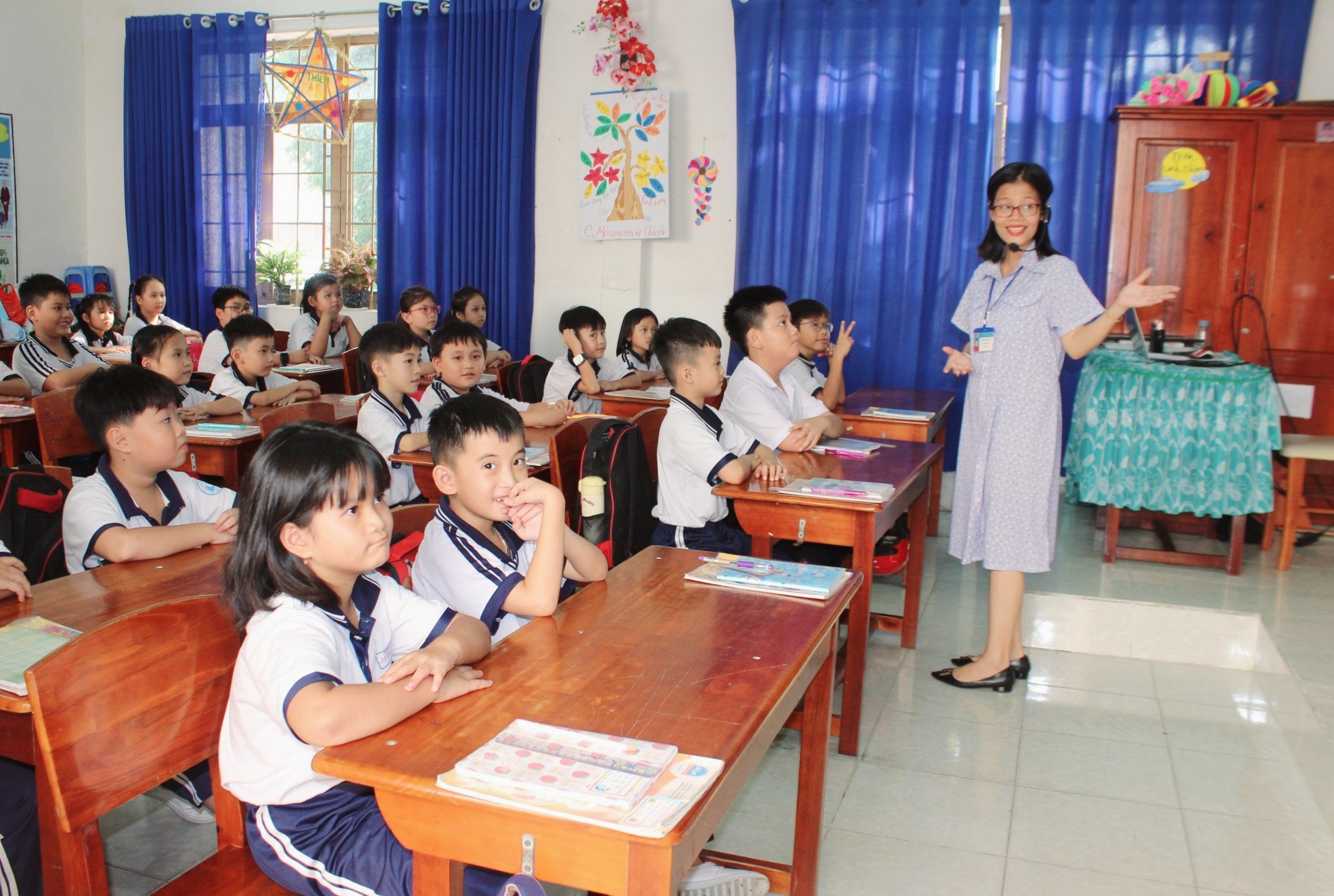 Trong tiết dạy, cô Trịnh Thị Yến vừa là cô giáo, vừa là người bạn lớn của các em học sinh