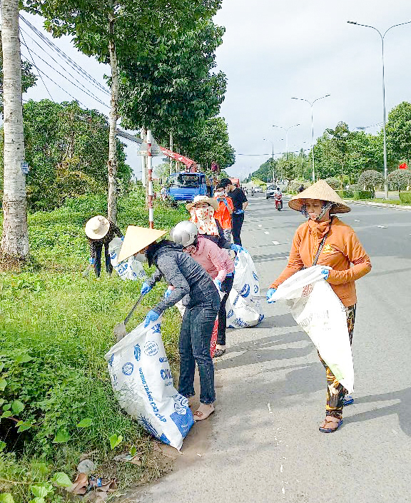 Cán bộ và nhân dân khu vực 7 tham gia vệ sinh môi trường. Ảnh: Khu vực cung cấp