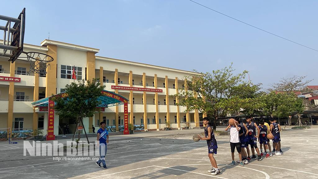 Học sinh Trường THCS Yên Thịnh (Yên Mô) tập luyện môn bóng rổ.