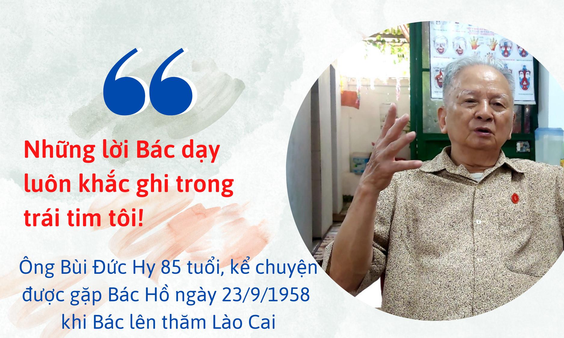 Trở lại câu chuyện với ông Bùi Đức Hy, người vinh dự được gặp Bác Hồ khi Bác thăm Lào Cai, ông bảo cách đây 64 năm, Bác Hồ mong muốn Lào Cai trở thành khu công nghiệp lớn của cả nước, đưa miền núi tiến kịp miền xuôi và hỏi “Các cô chú có làm được không?”. Cán bộ, công nhân, bà con các dân tộc đều đồng thanh hô vang “Có ạ! Có ạ!”. “Thật phấn khởi và tự hào khi hôm nay những điều Bác kỳ vọng đang hiện hữu, tỉnh Lào Cai đã trở thành điểm sáng của khu vực Tây Bắc. Luôn khắc ghi và làm theo lời Bác dạy, chắc chắn Lào Cai sẽ thực hiện được mục tiêu trở thành tỉnh phát triển của cả nước trong tương lai”, ông Bùi Đức Hy nói.