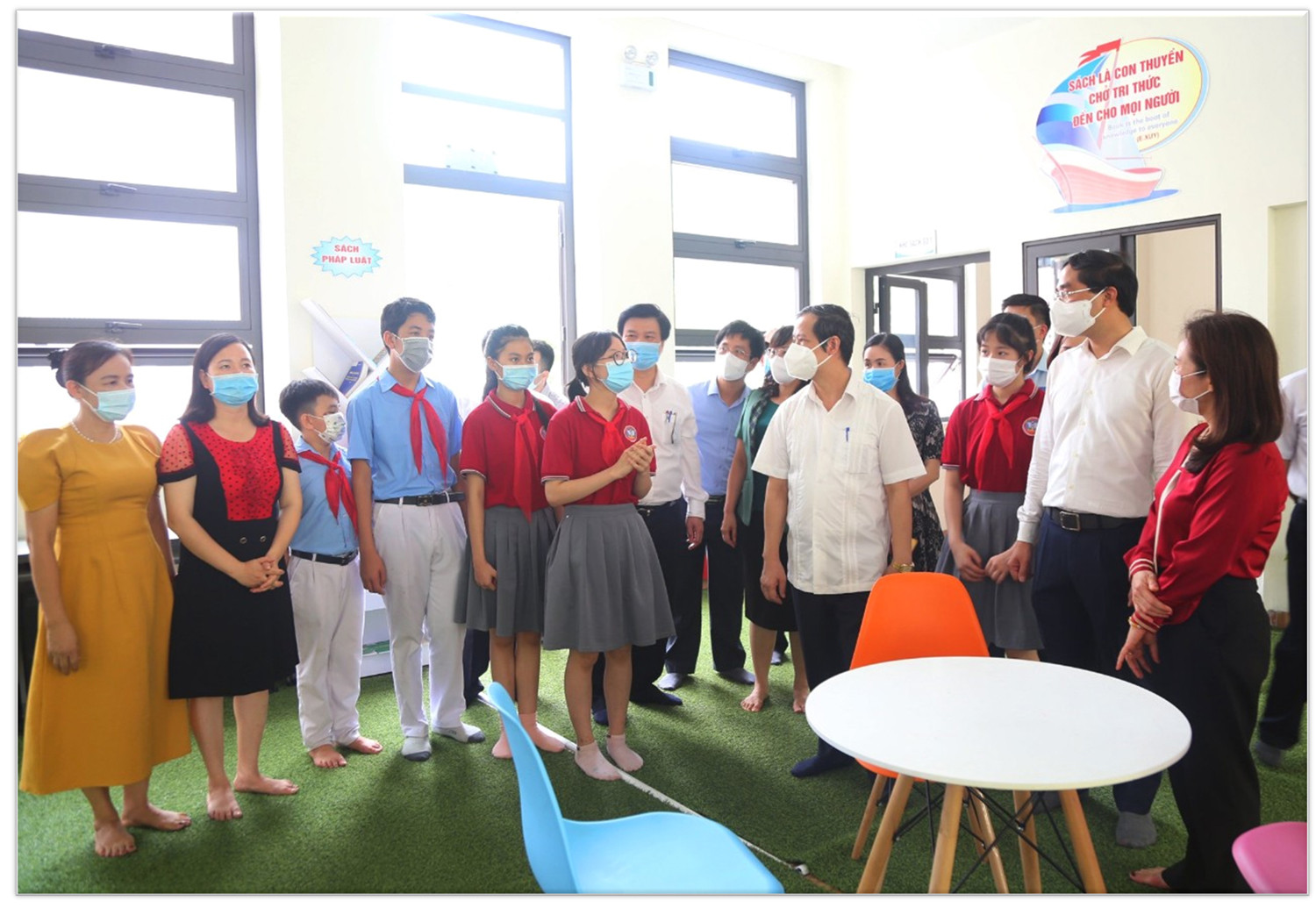 Bộ trưởng Bộ Giáo dục và Đào tạo Nguyễn Kim Sơn nghe học sinh giới thiệu cụm liên trường Kim Tân.