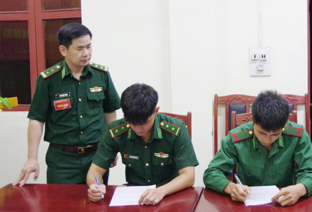 Thượng tá Lục Quang Trung kiểm tra nhận thức chính trị chiến sỹ trẻ tại Đồn Biên phòng Cần Yên.