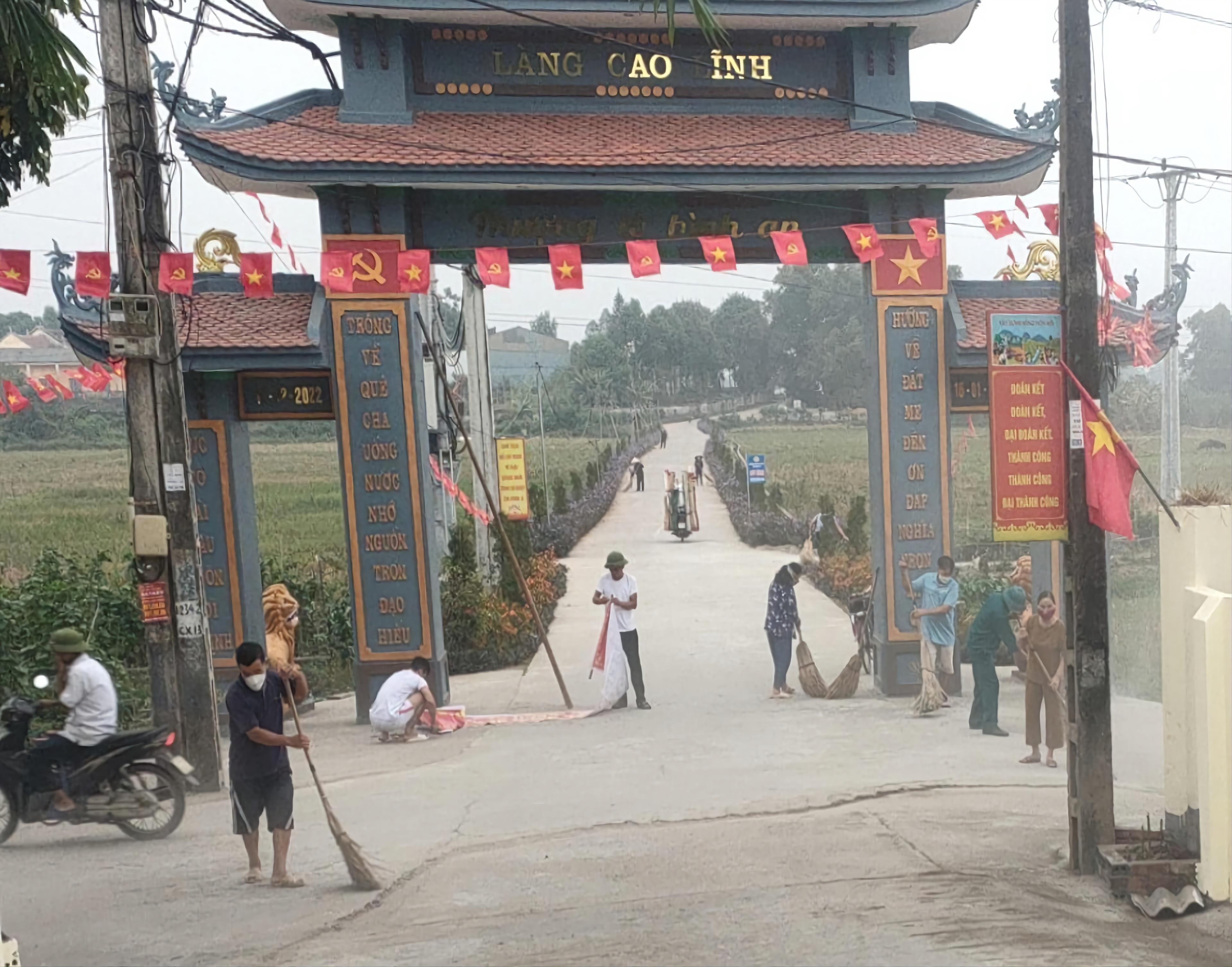 Bà Cao Thị Đông đã đi đầu vận động con cháu trong gia đình tự nguyện ủng hộ kinh phí xây dựng cổng làng văn hóa trị giá hơn 300 triệu đồng, góp phần xây dựng nông thôn mới ở địa phương