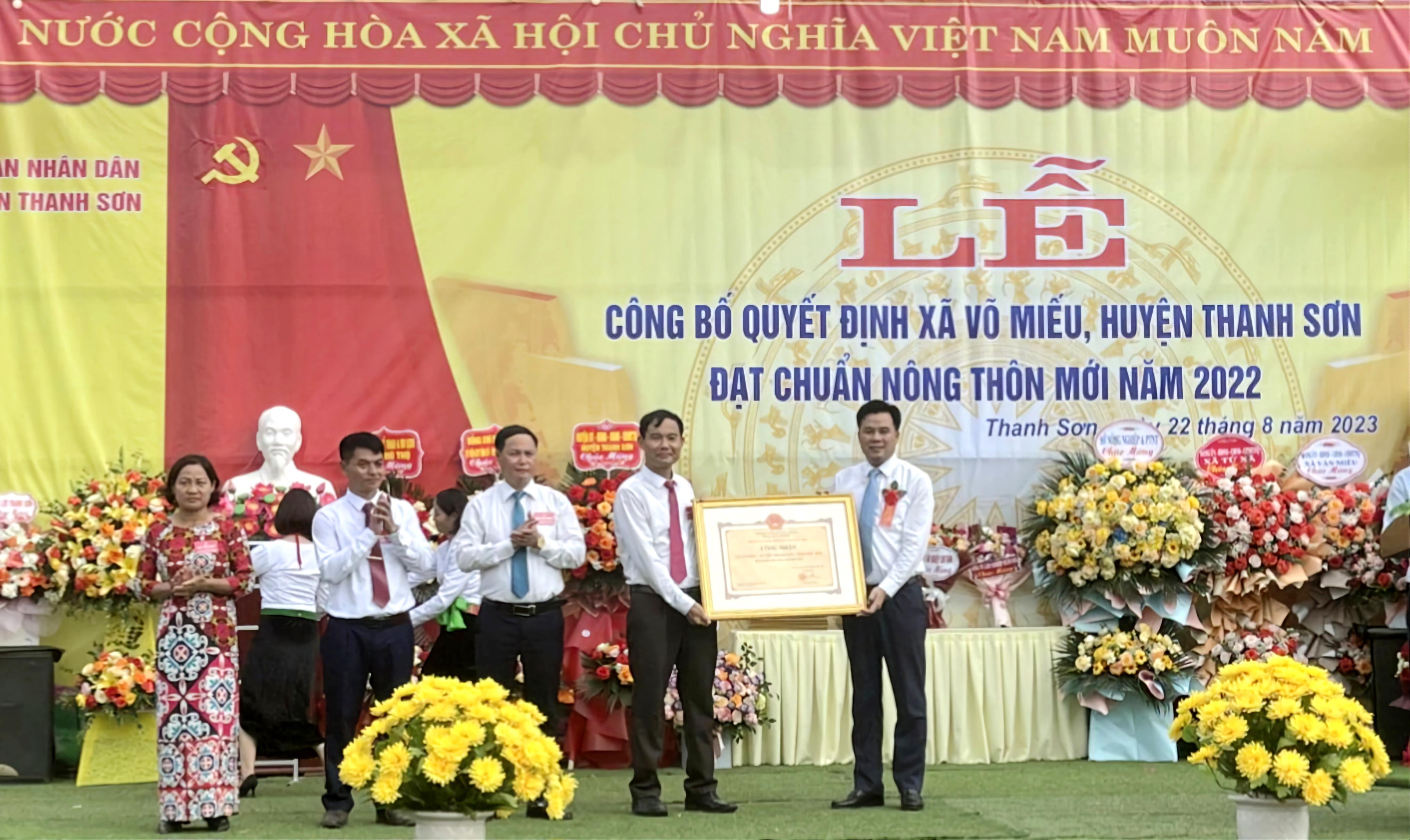 Tháng 8/2023, nhân dân xã Võ Miếu huyện Thanh Sơn phấn khởi đón nhận danh hiệu xã đạt chuẩn nông thôn mới.