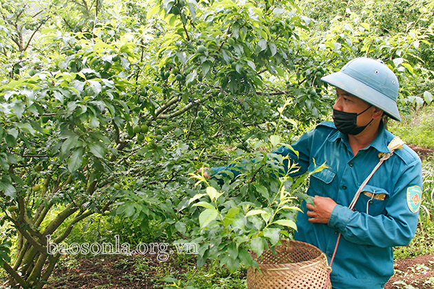 Người dân xã Phiêng Khoài, huyện Yên Châu thu hái mận hậu trái vụ.