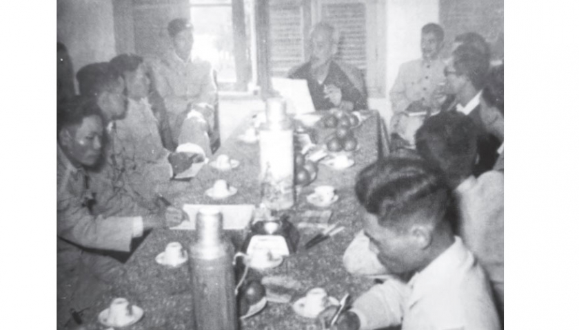 Chủ tịch Hồ Chí Minh làm việc với các đồng chí lãnh đạo tỉnh Thái Bình trong dịp Người về thăm Đại hội nông dân toàn tỉnh phát động sản xuất nông nghiệp vụ đông - xuân 1958 - 1959, ngày 26/10/1958. Ảnh tư liệu