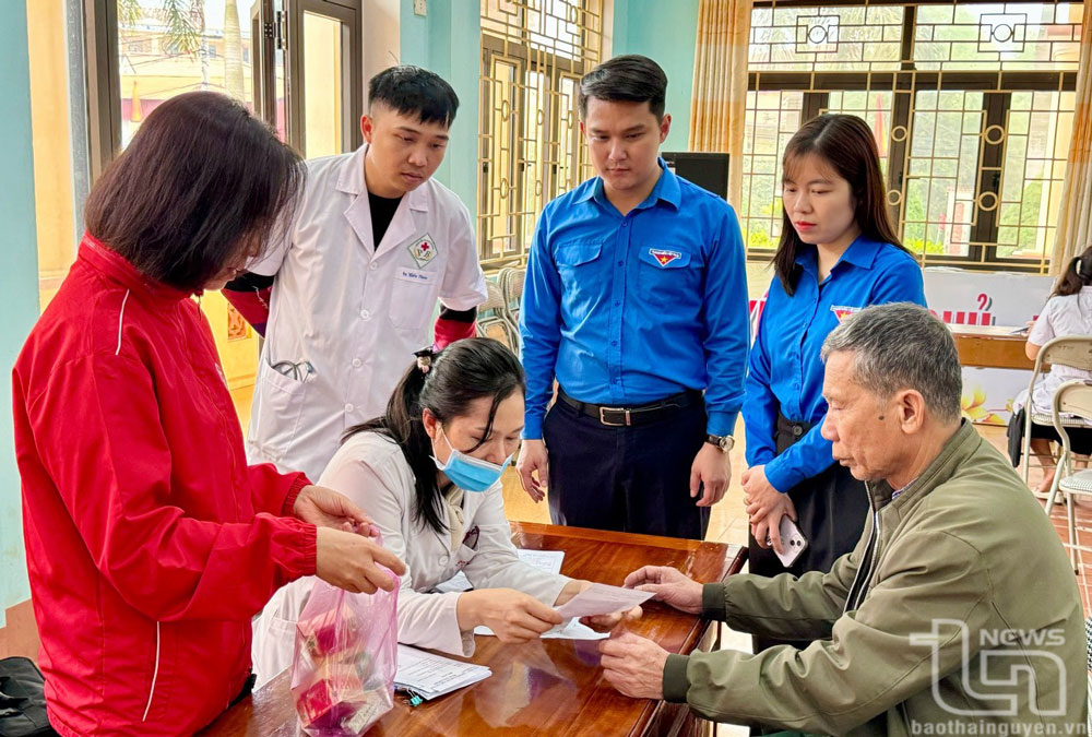 Đoàn Thanh niên Bệnh viện Trung ương Thái Nguyên tổ chức khám bệnh, cấp phát thuốc miễn phí cho người dân.