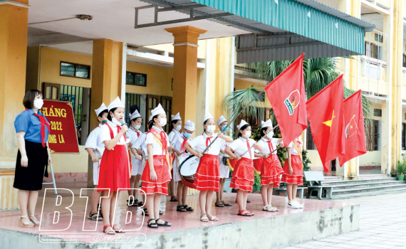 Đội nghi thức của Liên đội Trường Tiểu học Đông La (Đông Hưng) trong ngày khai giảng năm học 2021 - 2022.