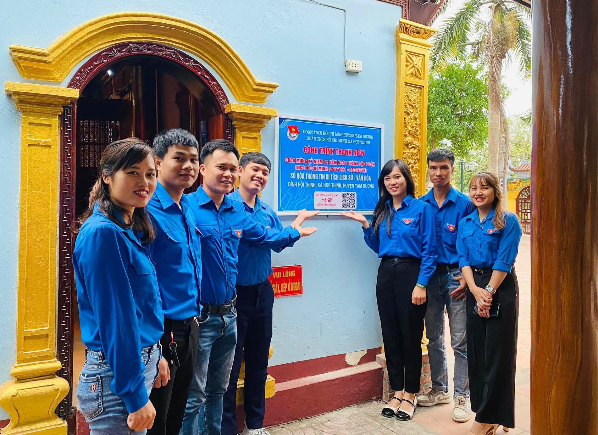 Đoàn Thanh niên xã Hợp Thịnh ra mắt công trình thanh niên số hóa thông tin di tích lịch sử - văn hóa tại Đình Hội Thịnh và chùa Động Lâm. Ảnh: Dương Hà