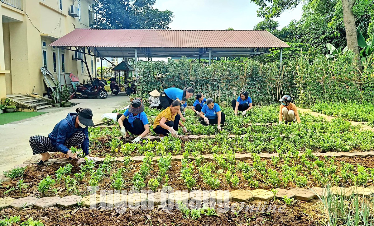 Năm 2021, Hội LHPN phường phối hợp với trường Mầm non Hưng Thành xây dựng mô hình “Vườn rau của bé”, cung cấp rau sạch trong bữa ăn hàng ngày cho trẻ học bán trú. Những luống rau của các hội viên trong chi hội trồng, mùa nào thức nấy, cung cấp đủ rau xanh cho học sinh mầm non trên địa bàn phường. Cứ cuối tuần, các hội viên trong các chi hội lại đến trường, người bắt sâu, người trồng thêm luống rau mới... Chị Hương chia sẻ, có lẽ xuất phát điểm đều là những người mẹ, người bà, nên mong muốn con cháu được sử dụng những thực phẩm tươi ngon nhất, sạch nhất đã thúc đẩy chị em trong hội đăng ký việc học tập và làm theo này. Mô hình “Vườn rau của bé” vẫn được duy trì từ năm 2021 đến nay.