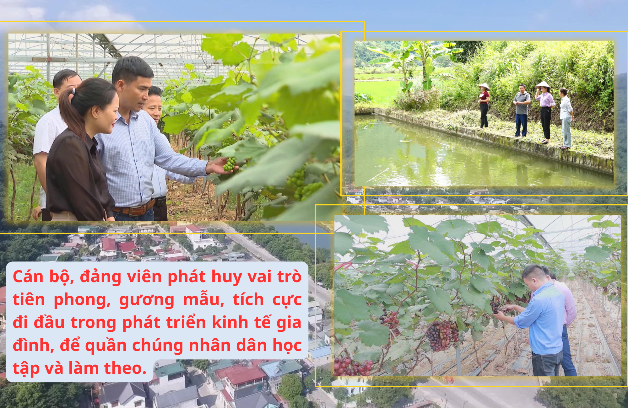 Đảng ủy xã đã chỉ đạo cán bộ, đảng viên phát huy vai trò tiên phong, gương mẫu, tích cực đi đầu trong phát triển kinh tế gia đình, để quần chúng nhân dân học tập và làm theo. Công tác tuyên truyền cũng được đẩy mạnh với nhiều hình thức (văn bản hướng dẫn, pano, khẩu hiệu tuyên truyền, trên fanpage, qua hệ thống loa truyền thanh….), góp phần lan tỏa gương người tốt, việc tốt.