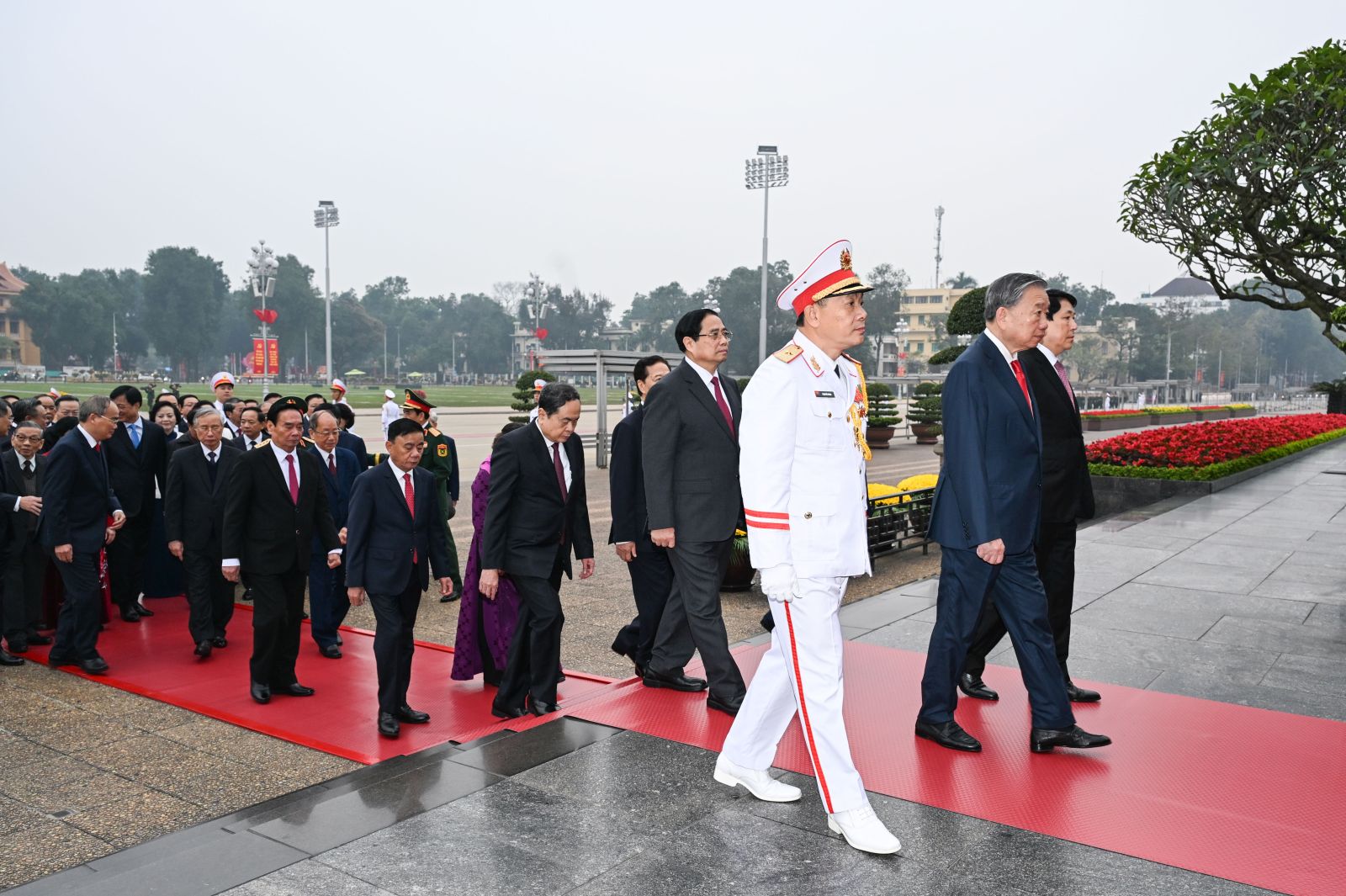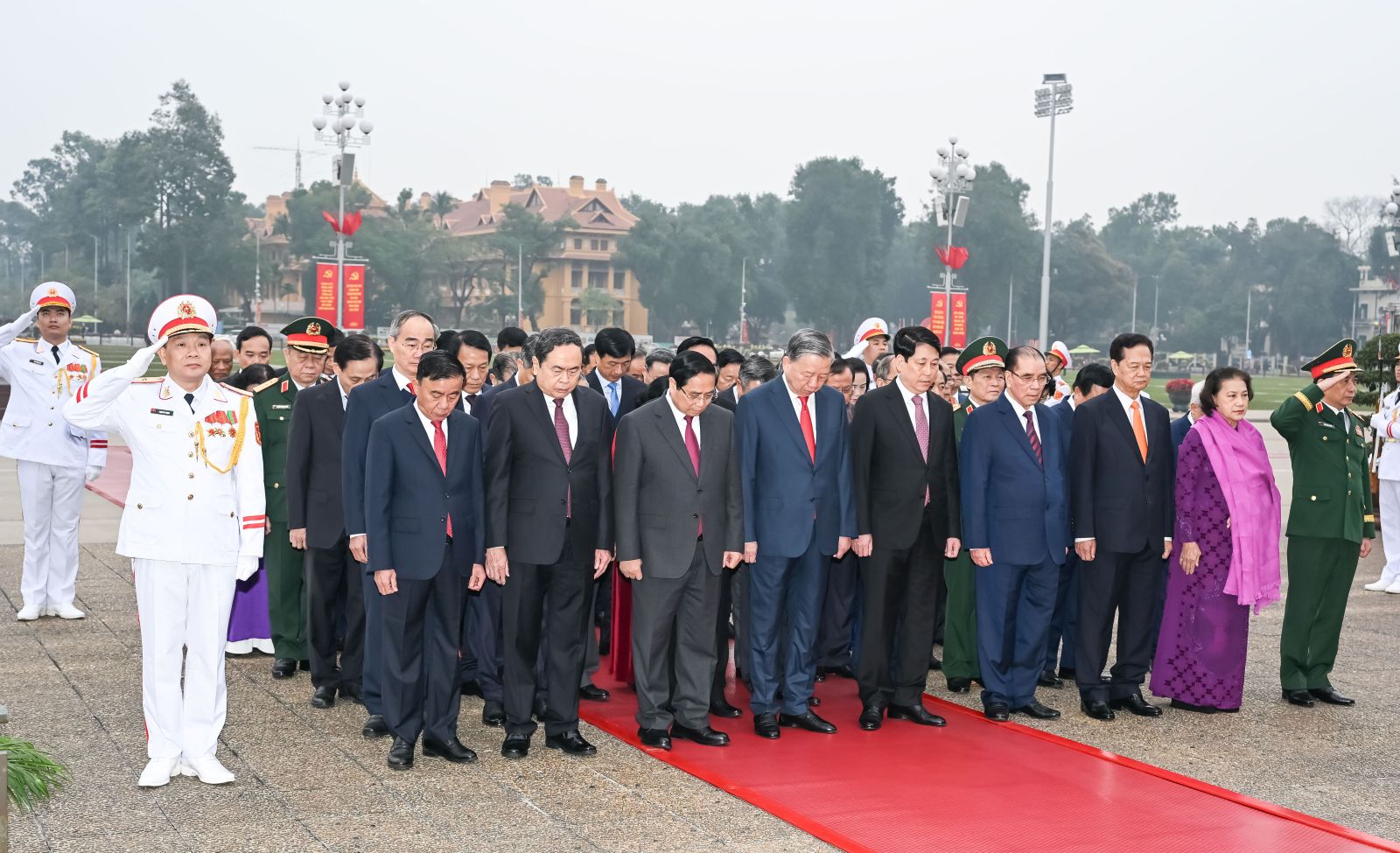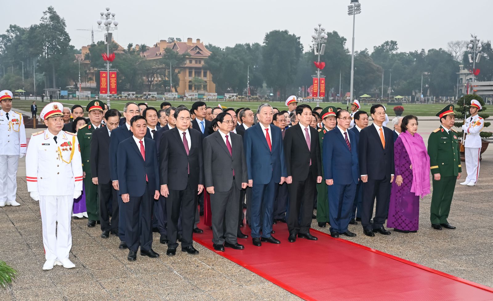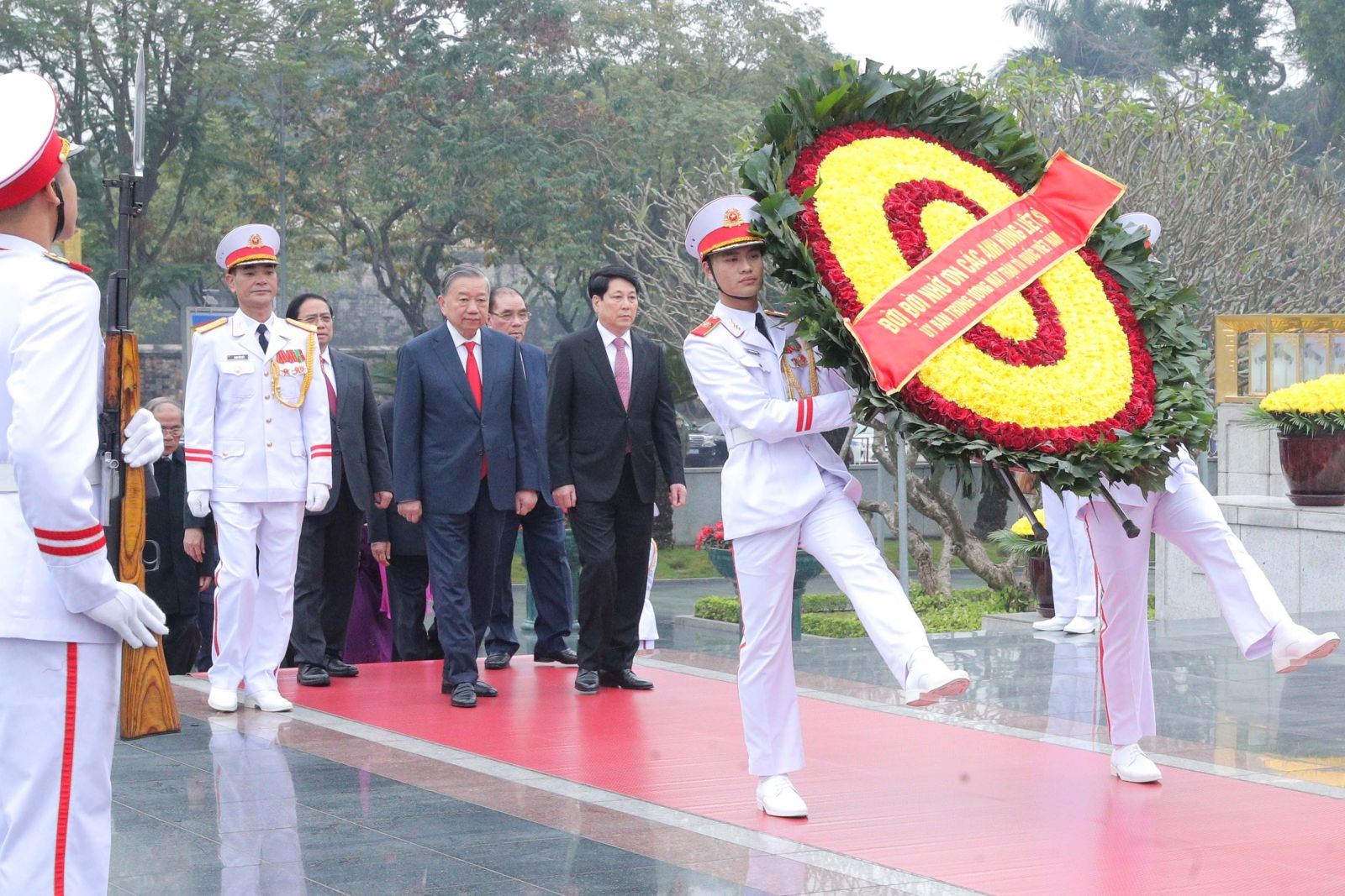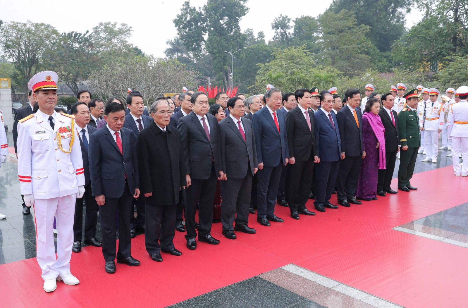 (ĐCSVN) - Nhân kỷ niệm 96 năm Ngày thành lập Đảng Cộng sản Việt Nam (3/2/1930 - 3/2/2026) và chuẩn bị đón Tết Nguyên đán Bính Ngọ 2026, sáng 3/2, Đoàn đại biểu Ban Chấp hành Trung ương Đảng, Chủ tịch nước, Quốc hội, Chính phủ, Ủy ban Trung ương Mặt trận Tổ quốc Việt Nam đã đặt vòng hoa, vào Lăng viếng Chủ tịch Hồ Chí Minh và dâng hương tưởng niệm các Anh hùng Liệt sỹ tại Đài tưởng niệm các Anh hùng Liệt sỹ trên đường Bắc Sơn (Hà Nội).