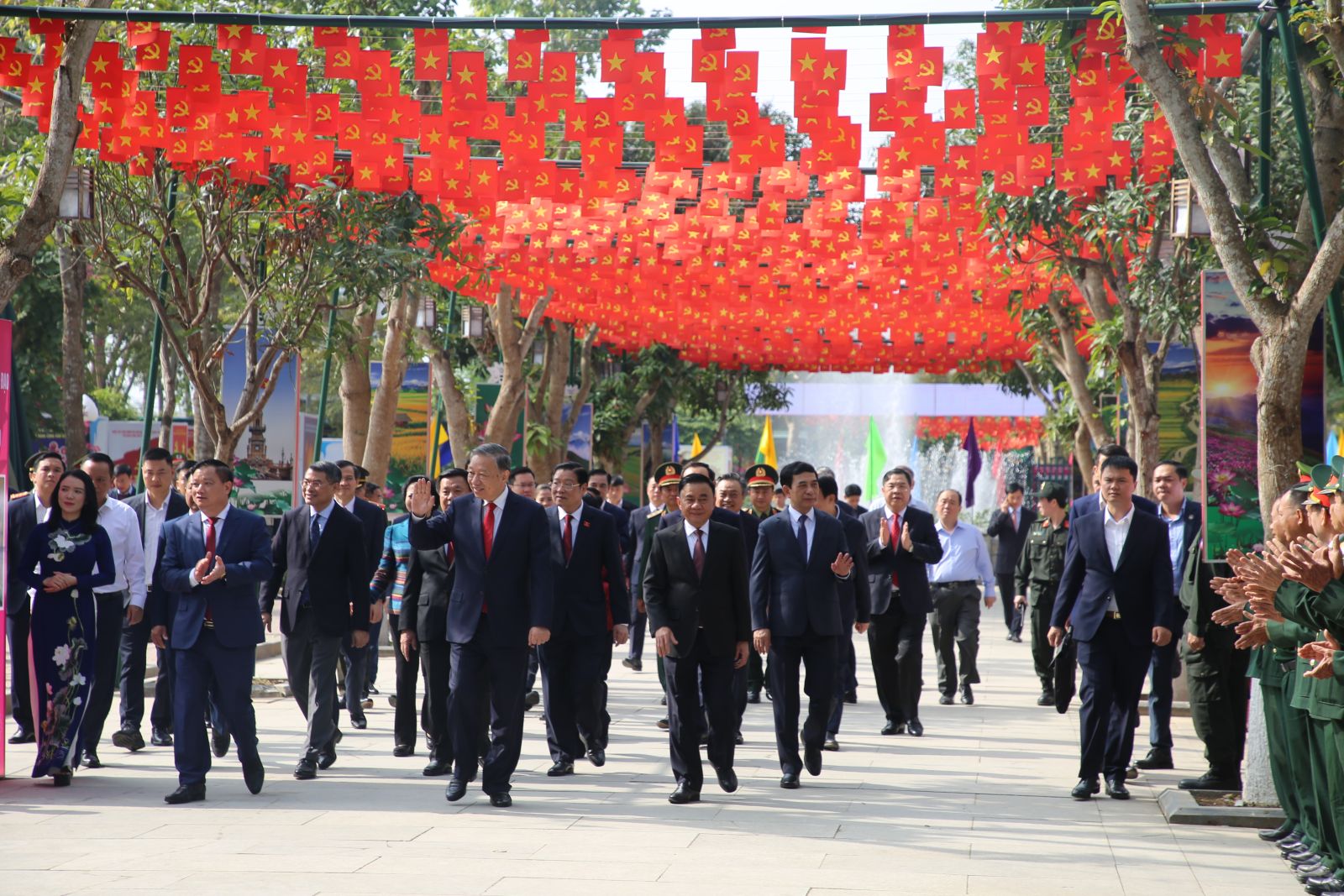 Cùng đi với Tổng Bí thư có các đồng chí Ủy viên Bộ Chính trị: Thường trực Ban Bí thư Trần Cẩm Tú; Trưởng Ban Tổ chức Trung ương Lê Minh Hưng; Trưởng Ban Tuyên giáo và Dân vận Trung ương Trịnh Văn Quyết; Chủ nhiệm Ủy ban Kiểm tra Trung ương Trần Sỹ Thanh; Chủ tịch Ủy ban Trung ương MTTQ Việt Nam Bùi Thị Minh Hoài; Đại tướng Phan Văn Giang, Bộ trưởng Bộ Quốc phòng; Đại tướng Lương Tam Quang, Bộ trưởng Bộ Công an; Phó Giám đốc Thường trực Học viện Chính trị Quốc gia Hồ Chí Minh Đoàn Minh Huấn; Chánh văn phòng Trung ương Đảng Phạm Gia Túc và Bí thư Thành ủy Hà Nội Nguyễn Duy Ngọc.