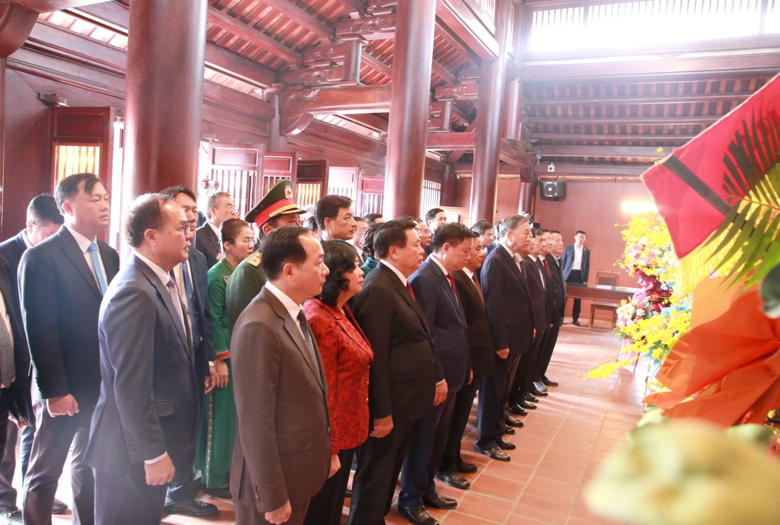 Tổng Bí thư Tô Lâm và các đồng chí lãnh đạo dâng hoa, dâng hương tại Đền Chung Sơn - Đền thờ Gia tiên Bác Hồ.