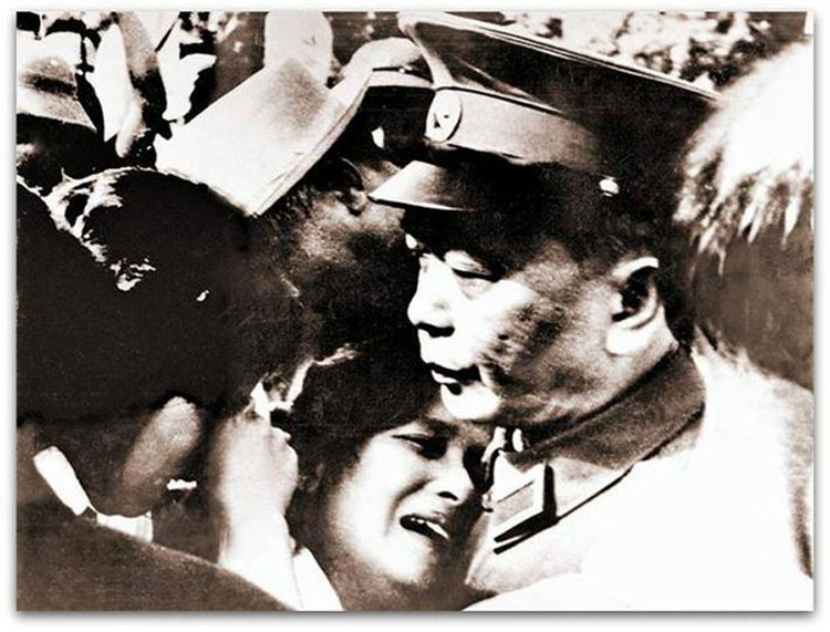 Đại tướng Võ Nguyên Giáp an ủi người dân trong ngày Quốc tang của dân tộc. Ảnh tư liệu.
