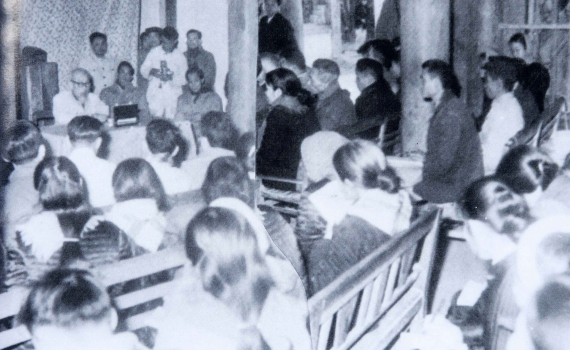Trong khi Bác ngồi nói chuyện, hai đồng chí Tố Hữu và Hoàng Anh vẫn đứng sau Bác. Các đồng chí nhà báo và điện ảnh vẫn quay phim, chụp ảnh. Bác bảo tôi ngồi xuống cạnh ghế của Bác. Tất nhiên là tôi không ngồi vì hai đồng chí trong Ban Bí thư Trung ương Đảng vẫn đứng. Bác quay lại nắm tay tôi, vừa kéo tôi ngồi xuống ghế vừa bảo: “Gớm chú lại còn phân giai cấp à!”. Cả hội trường cười ran. Ai nấy đều phấn khởi và cảm thấy sao mà Bác gần gũi, yêu thương chúng ta đến thế. Ít ngày sau, các đồng chí nhà báo gửi cho tôi tấm ảnh chụp tôi ngồi bên ghế là có ý cho phép tôi thay mặt Đảng bộ Thái Bình được ngồi bên Bác.