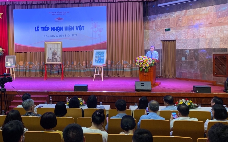 Nhân dịp kỷ niệm 78 năm Ngày Cách mạng Tháng Tám thành công (19/8/1945 – 19/8/2023) và Ngày Quốc khánh nước Cộng hòa Xã hội Chủ nghĩa Việt Nam (2/9/1945 – 2/9/2023), ngày 23/8, tại Hà Nội, Bảo tàng Hồ Chí Minh tổ chức Lễ tiếp nhận hiện vật được trao tặng từ ông Đoàn Văn Đức, Phó Chánh Văn phòng Thành ủy Hà Nội, và gia đình ông Nguyễn Văn Đức - con trai của họa sĩ Văn Giáo.
