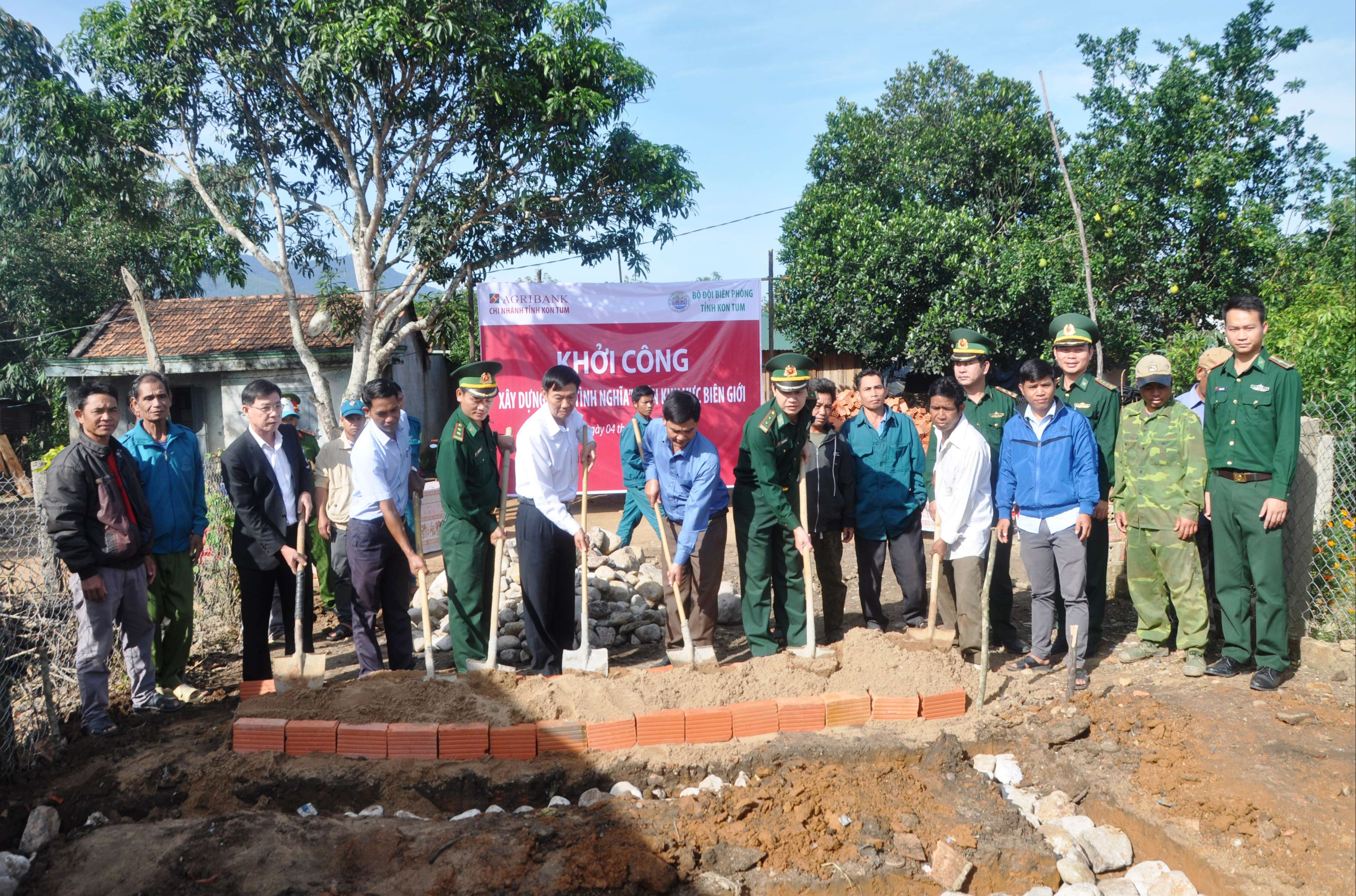 Khởi công xây nhà tình nghĩa cho ông A Đen ở xã Rờ Kơi, huyện Sa Thầy. Ảnh: VH