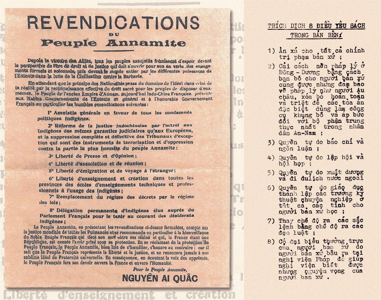 Đầu năm 1919, Nguyễn Tất Thành tham gia Đảng Xã hội Pháp "chỉ vì đây là tổ chức duy nhất ở Pháp theo đuổi lý tưởng cao quý của Đại cách mạng Pháp: Tự do, Bình đẳng, Bác ái" [2]. Giữa năm 1919, Người thay mặt những người Việt Nam yêu nước tại Pháp gửi bản Yêu sách của nhân dân An Nam (ký tên Nguyễn Ái Quốc) tới Hội nghị các nước đế quốc họp tại Versailles. Đây là tiếng nói chính nghĩa đầu tiên của đại biểu phong trào giải phóng dân tộc Việt Nam trên diễn đàn quốc tế, cũng là sự xuất hiện lần đầu tiên của Nguyễn Ái Quốc trên vũ đài chính trị. Mặc dù Yêu sách chỉ nêu những yêu cầu tối thiểu trong khuôn khổ cải cách, nhưng đã không nhận được một lời phúc đáp. Từ thực tế ấy, Nguyễn Ái Quốc kết luận:" Muốn được giải phóng, các dân tộc chỉ có thể trông cậy vào mình, trông cậy vào lực lượng của bản thân mình"[3].