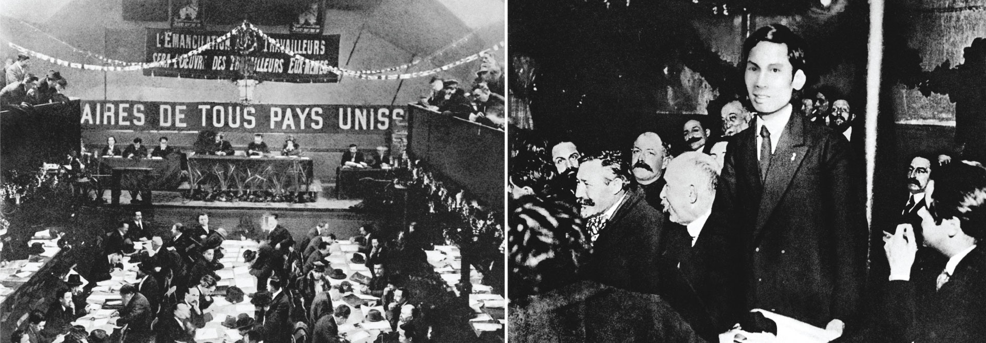 Ảnh trái: Toàn cảnh Đại hội đại biểu toàn quốc lần thứ 18 Đảng Xã hội Pháp ở thành phố Tours, Nguyễn Ái Quốc tham dự với tư cách là đại biểu Đông Dương, tháng 12-1920.