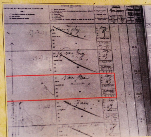 Được nhận làm phụ bếp trên tàu L’Amirale Latouche Tresville, với lương tháng 45 franc, ngày 3-6-1911, Người (với tên gọi mới là Văn Ba) đã chính thức nhận việc và ngày 5-6-1911, tàu nhổ neo rời bến cảng Nhà Rồng đưa Người hướng tới nước Pháp. Hành trình chuyến đi như sau: Ngày 5-6, tàu rời bến cảng Nhà Rồng, ngày 8-6, tàu tới Singapore, 14-6, tàu ghé Colombo (Sri Lanka), ngày 30-6, tới Port Said (Ai Cập) và ngày 6-7 tàu cập cảng Marseille, miền Nam nước Pháp.