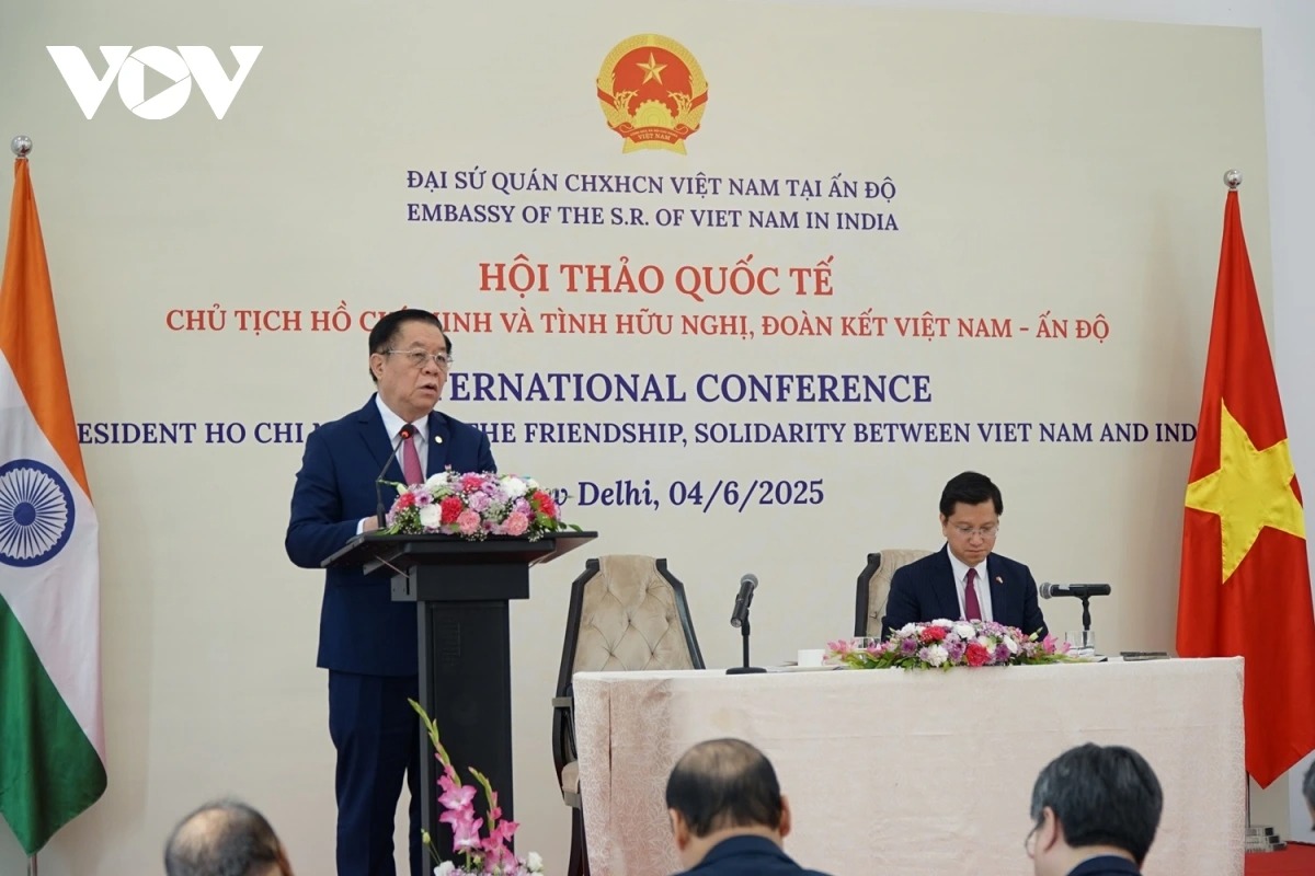 Trưởng Ban Tuyên giáo và Dân vận Trung ương Nguyễn Trọng Nghĩa phát biểu tại Hội thảo quốc tế “Chủ tịch Hồ Chí Minh và tình hữu nghị, đoàn kết Việt Nam - Ấn Độ”