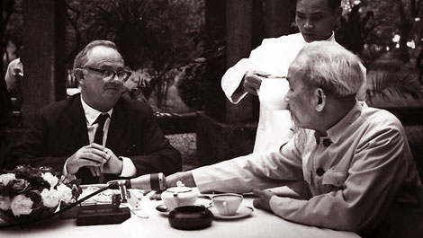 Bác Hồ với các nhà ngoại giao quốc tế tại Thủ đô Hà Nội. Ảnh tư liệu