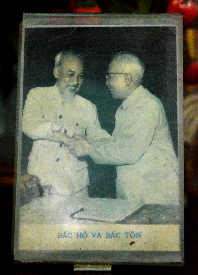Bức ảnh lịch sử Bác Hồ - Bác Tôn đã nhuốm màu thời gian,