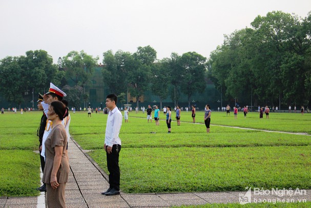 Một ngày mới bắt đầu ở Quảng trường Ba Đình lịch sử là lễ thượng cờ Tổ quốc lúc 6 giờ sáng. Từ 5 giờ 50 phút, loa phát thanh từ quảng trường thông báo: “Đã đến giờ cử hành lễ chào cờ. Đề nghị nhân dân ở khu vực quảng trường dừng mọi hoạt động, hướng về Lăng Chủ tịch Hồ Chí Minh để lễ chào cờ trang trọng”. Ắt thì tất cả những người dân đang tập thể dục ở khu vực này quay mặt về hướng Lăng, đứng nghiêm trang.