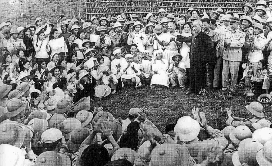 Chủ tịch Hồ Chí Minh thăm và nói chuyện với cán bộ, bộ đội, công nhân Nông trường quân đội Mộc Châu, ngày 8/5/1959. Ảnh: Tư Liệu