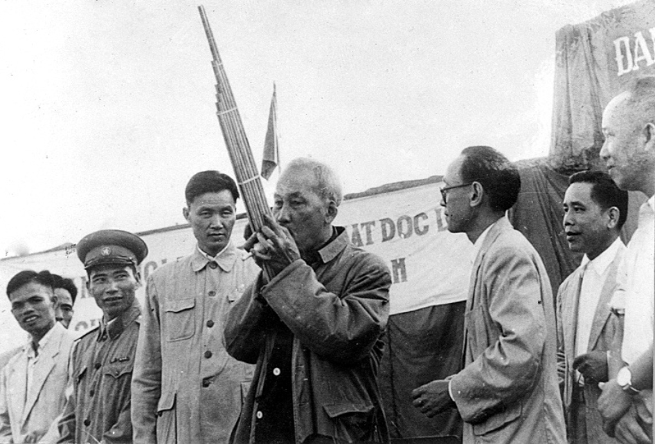 Chủ tịch Hồ Chí Minh thổi khèn do đồng bào các dân tộc châu Yên Châu tặng, ngày 8/5/1959. Ảnh: Tư Liệu