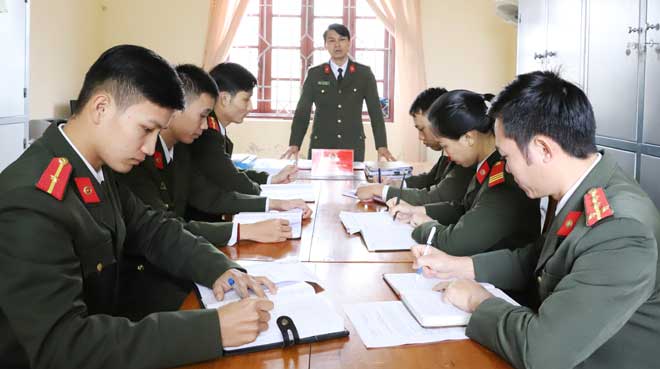 Một buổi triển khai nhiệm vụ công tác của Đội an ninh Công an huyện Lộc Hà