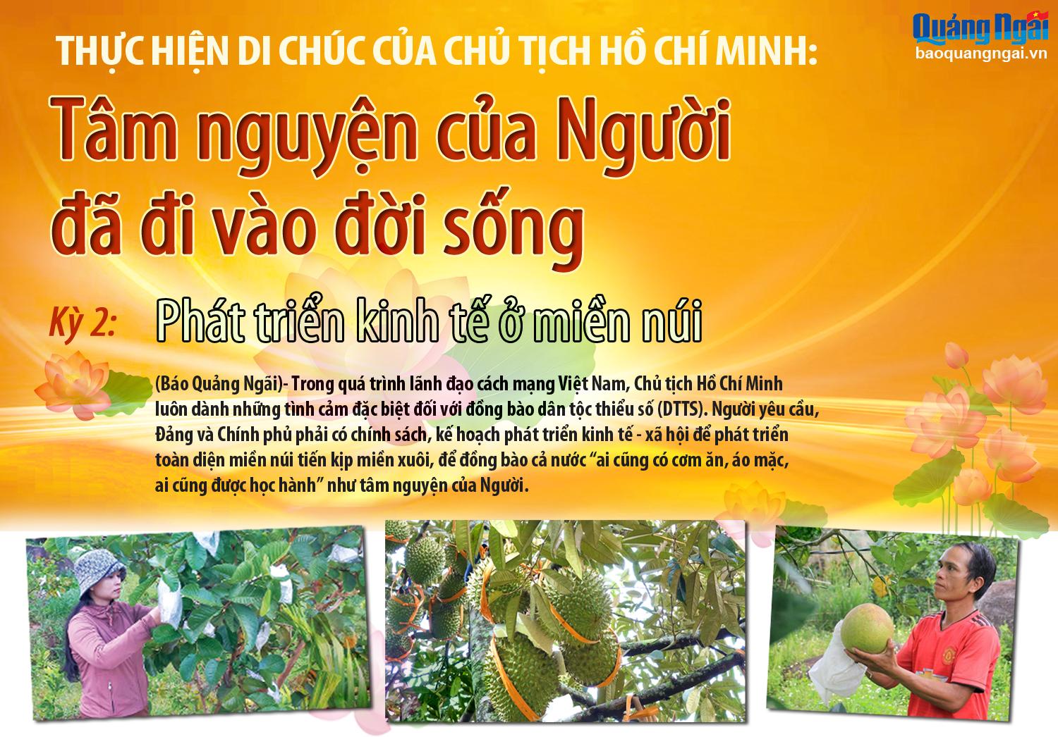 Bí thư Huyện ủy Minh Long Nguyễn Mạnh Thái chia sẻ, huyện Minh Long có 76% dân số là người đồng bào dân tộc Hrê, từng là một trong 61 huyện nghèo của cả nước. Để thúc đẩy phát triển kinh tế - xã hội vùng DTTS và miền núi, huyện khuyến khích người dân phát huy những tiềm năng, thế mạnh vốn có cũng như phát huy tối đa các nguồn lực từ các dự án, chương trình đầu tư trên địa bàn huyện để hỗ trợ người dân phát triển kinh tế, vươn lên thoát nghèo bền vững. Từ năm 2021 đến nay, kinh tế của huyện duy trì tốc độ tăng trưởng gần 8,2%/năm.