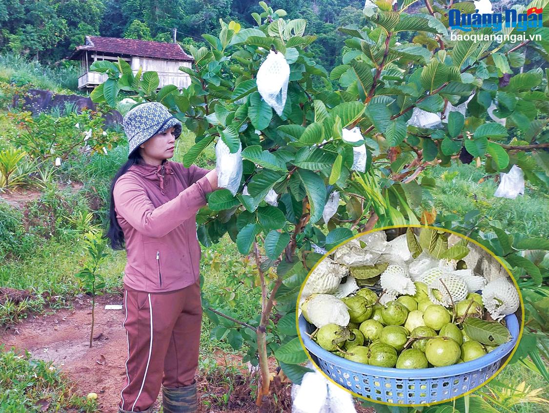 Chị Đinh Thị Bé, ở thôn Mang Hin, xã Sơn Long (Sơn Tây), thực hiện mô hình trồng ổi đem lại hiệu quả kinh tế cao. Ảnh: TRUNG ÂN