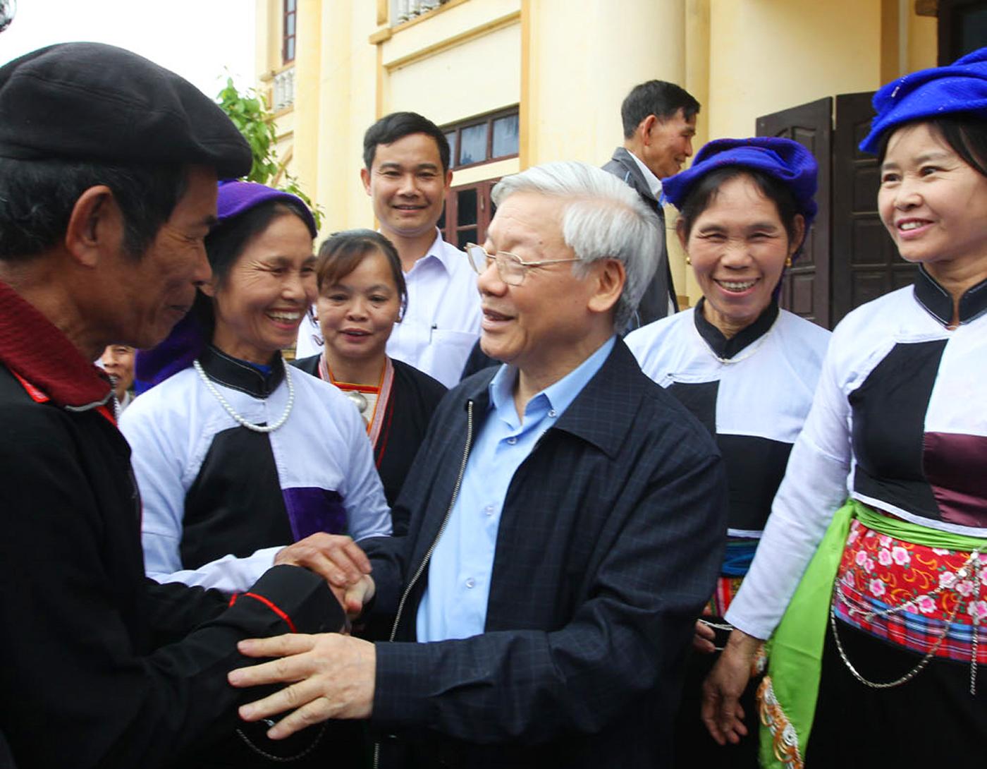 Tổng Bí thư Nguyễn Phú Trọng với cán bộ, nhân dân xã Võ Miếu, huyện Thanh Sơn, tỉnh Phú Thọ (Ảnh: TTXVN)