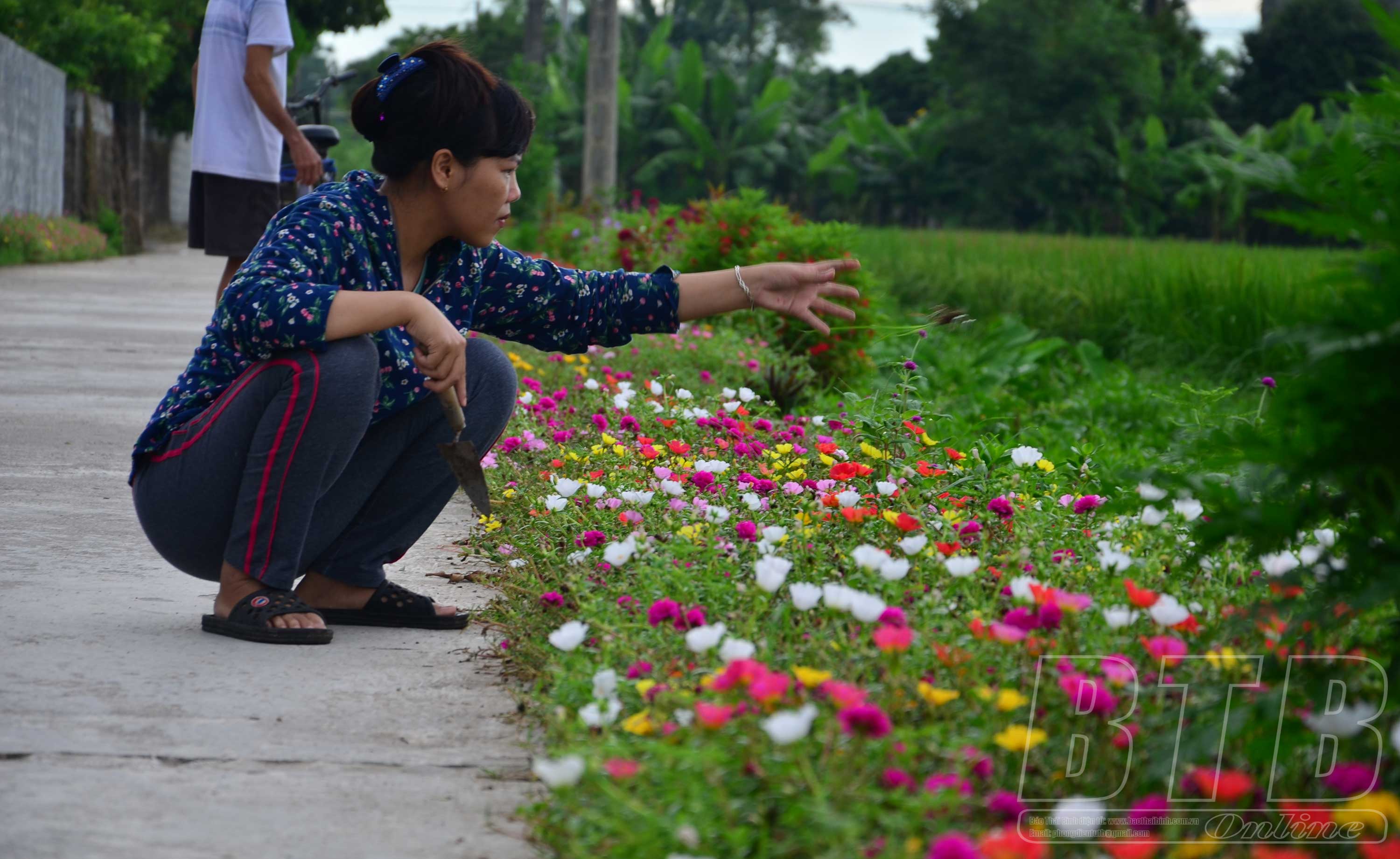 Phụ nữ xã Song Lãng (Vũ Thư) chăm sóc đường hoa.