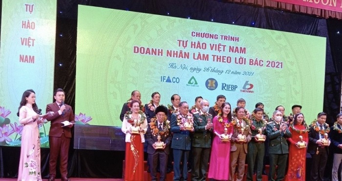 Ông Đỗ Văn Ngưỡng (thứ 6 từ trái sang) được vinh danh Chương trình Doanh nhân làm theo lời Bác năm 2021