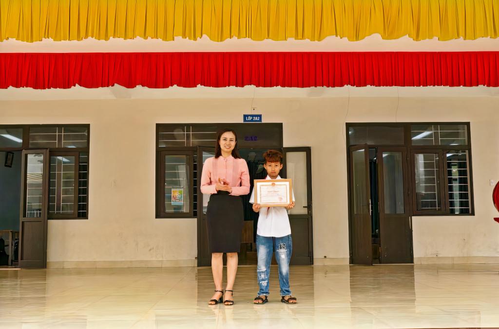 UBND thị trấn Cô Tô tặng Giấy khen cho Đỗ Việt Hoàng (học sinh Lớp 4A2, Trường Tiểu học thị trấn Cô Tô) nhặt được của rơi trả người đánh mất.