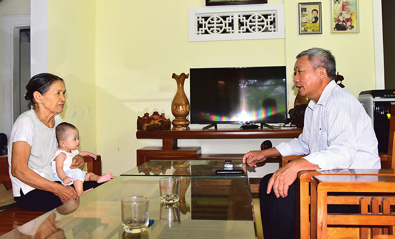 Bí thư Chi bộ thôn Phổ Lại, xã Thanh An Hoàng Công Kỳ trò chuyện với người dân - Ảnh: Trần Tuyền