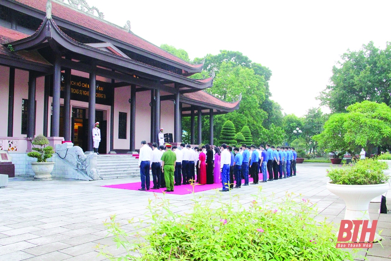 Cán bộ, đảng viên, đoàn viên, thanh niên và Nhân dân trên địa bàn TP Thanh Hóa đến dâng hoa, dâng hương báo công với Bác tại Khu Văn hóa tưởng niệm Chủ tịch Hồ Chí Minh (TP Thanh Hóa). Ảnh: Trần Thanh