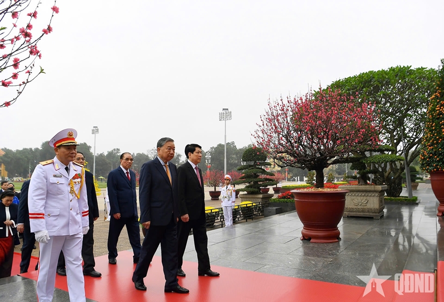 Sáng 13-2, nhân dịp Tết Nguyên đán Bính Ngọ 2026, đoàn đại biểu lãnh đạo, nguyên lãnh đạo Đảng, Nhà nước, Mặt trận Tổ quốc Việt Nam, Quân ủy Trung ương, Bộ Quốc phòng đã đặt vòng hoa, vào Lăng viếng Chủ tịch Hồ Chí Minh và dâng hoa tưởng niệm các Anh hùng liệt sĩ tại Đài tưởng niệm các Anh hùng liệt sĩ (đường Bắc Sơn, Hà Nội).